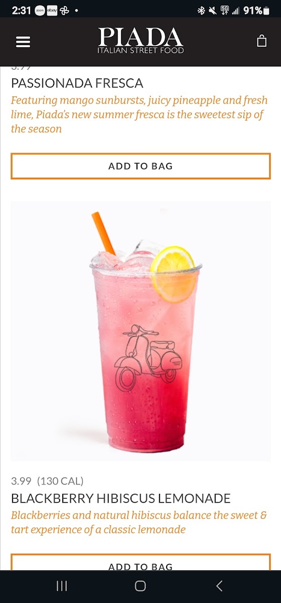 Piada Italian Street Food Menu